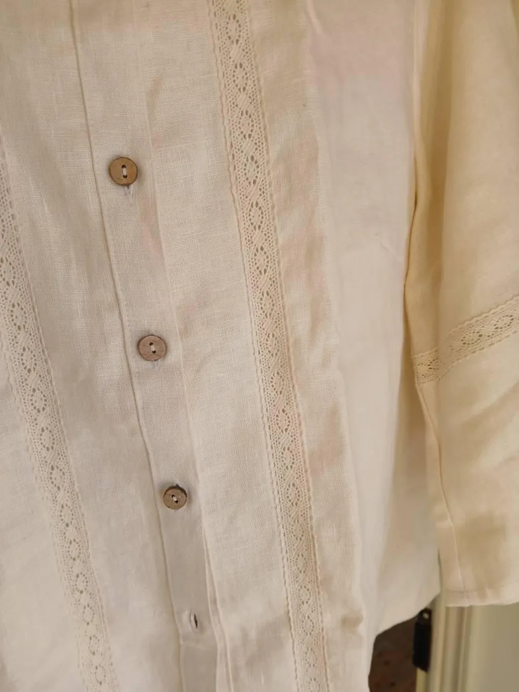The linen lace trim shirt adds an elegant touch to your look, effortlessly pairing with any bottoms. Each linen top is handcrafted in our studio to your measurements and preferences, and available in over 60 colors.